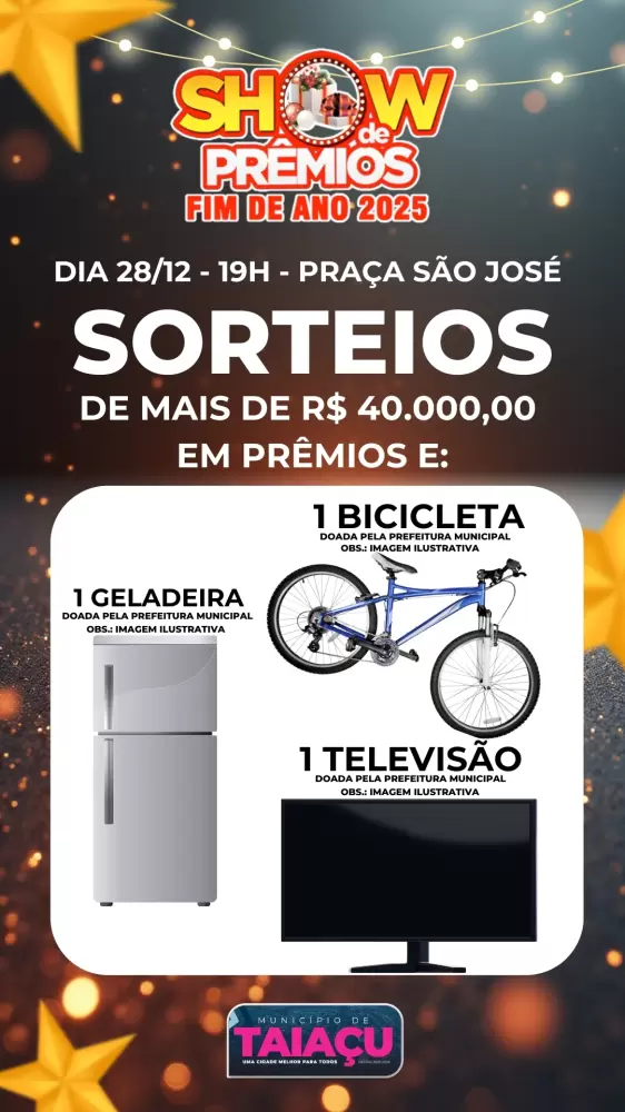 Para você que não participou no ano de 2025, fica o convite: em 2026 você também pode ter a chance de ganhar. Basta prestigiar e comprar no comércio local e participar do próximo Show de Prêmios.