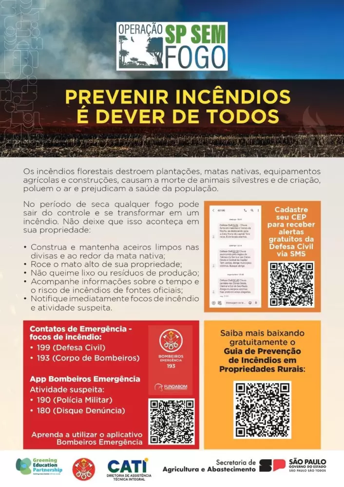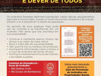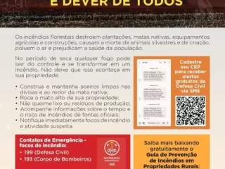 Prevenir incêndios é dever de todos! No período de seca qualquer fogo pode sair do controle e se transformar em um incêndio. Não deixe isso acontecer!